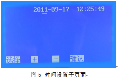 5、在圖2頁面下,按 選擇 鍵移動光標√ 至時間設置處,按 確認 鍵即可進入時間設置子頁面(圖5)。
