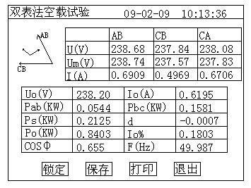 1)根據變壓器綜合測試儀變壓器類型參考后面對應的接線圖進行正確接線,然后接通空負載測試儀的工作電源(便攜式空負載測試儀出廠時內部接線為雙表法測量方式)。