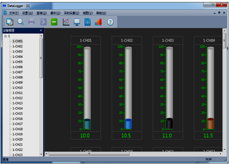 各個通道的參數可在設備管理區域內,選擇相應的通道點擊鼠標右鍵設備屬性進行設置。如下圖2-13通道屬性設置,在此窗口內可設置通道名稱,禁止報警,顯示顏色,通道單位,顯示小數位數等,并能夠向下位機讀取或者寫入通道的下限和上限等操作。