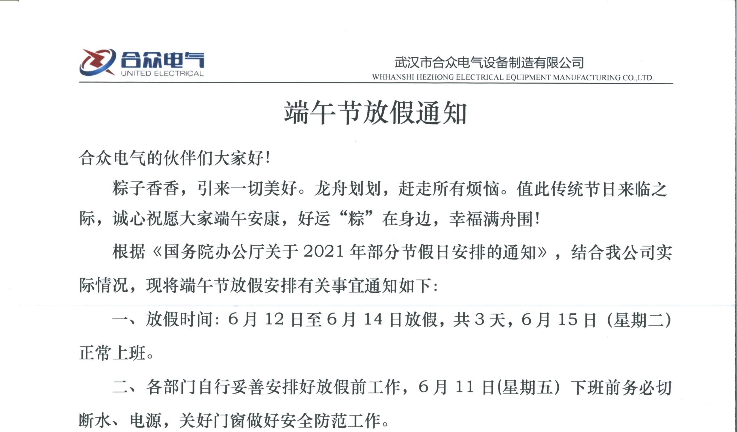 在此,武漢市合眾電氣也祝廣大新老客戶,節日愉快,端午安康。