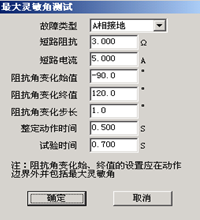 該測試專門用于測試距離保護的“最靈敏阻抗角”。按傳統方法進行,阻抗角變化始值、終值設置應分別設置在保護的兩動作邊界外,且包含最大靈敏角。因為測試點很多,若不知道保護實際動作的邊界整定值,為節約時間,在第一次測試時將變化步長設置得大一些,可以測試出大概的邊界。然后將阻抗角變化始值、終值設置在已知的兩邊界附近,并且給定一個合適的變化步長就可以測出精度符合要求的最大靈敏角。