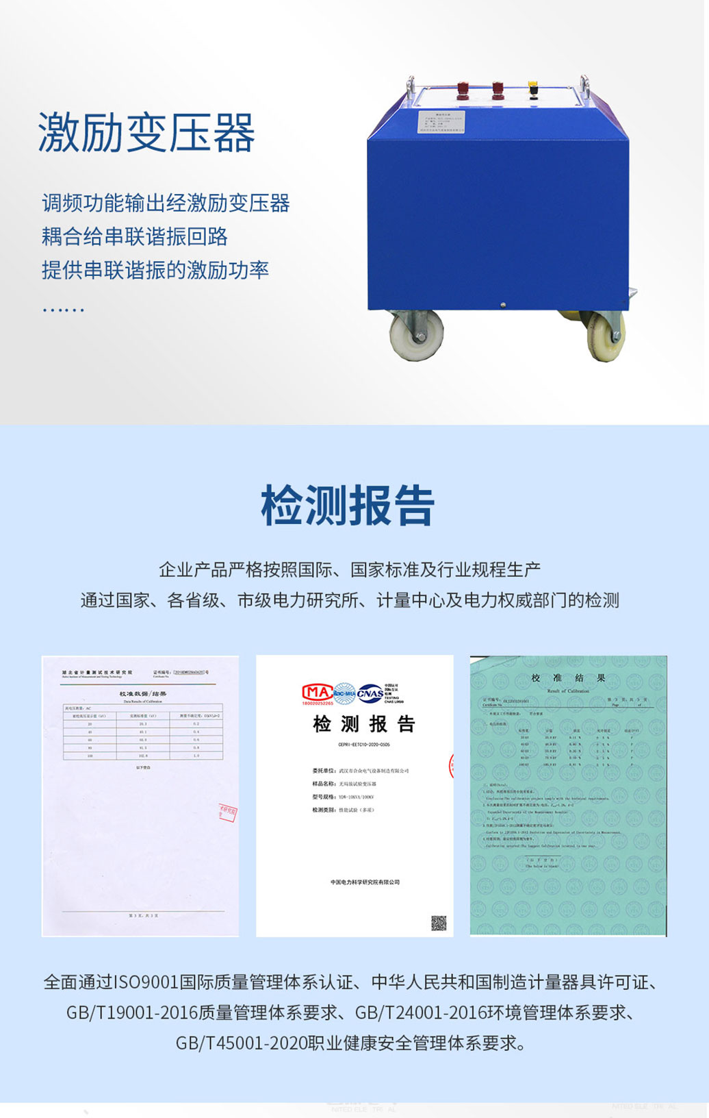 *該裝置主要由變頻控制電源、激勵(lì)變壓器、電抗器、電容分壓器、補(bǔ)償電容器(選配)組成。
