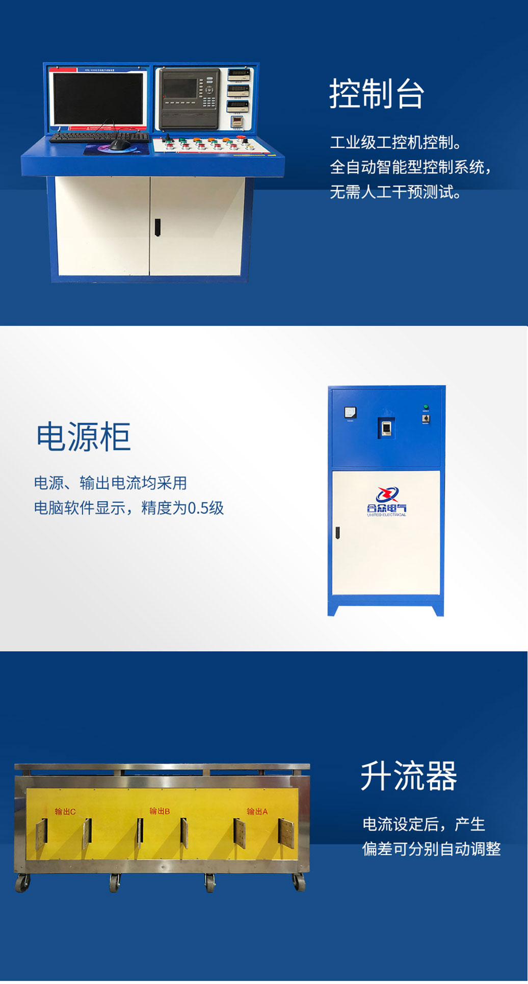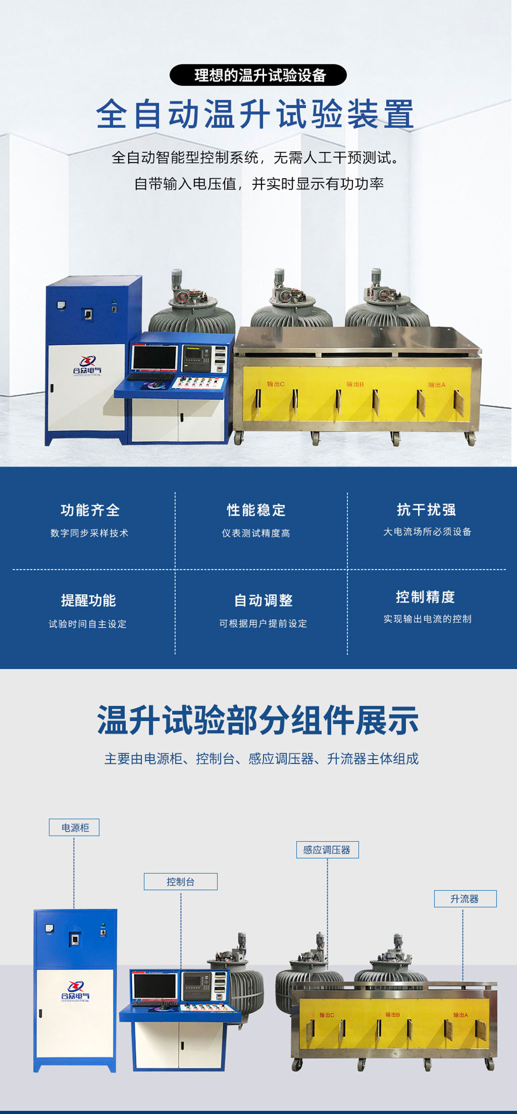 產(chǎn)品別稱:溫升試驗裝置、三相溫升試驗裝置、溫升大電流試驗裝置、大電流溫升試驗裝置、溫升試驗大電流發(fā)生器、溫升大電流發(fā)生器
