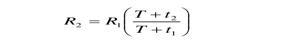 式中R1、R2分別為在溫度 t1、t2時的電阻值;T為計算用常數,銅導線取235,鋁導線取225。
