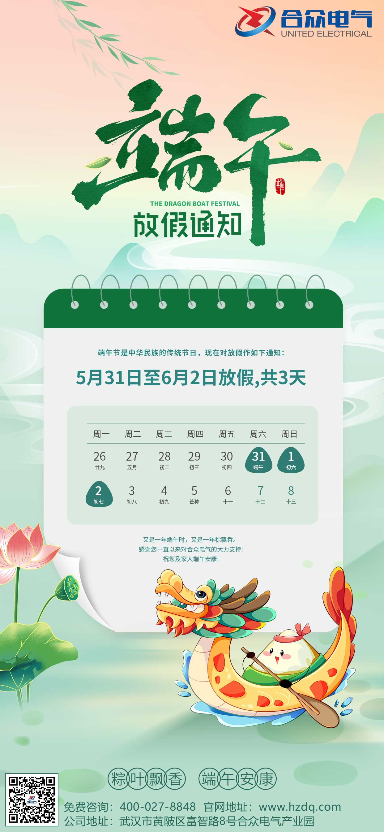武漢市合眾電氣2025年端午節放假通知